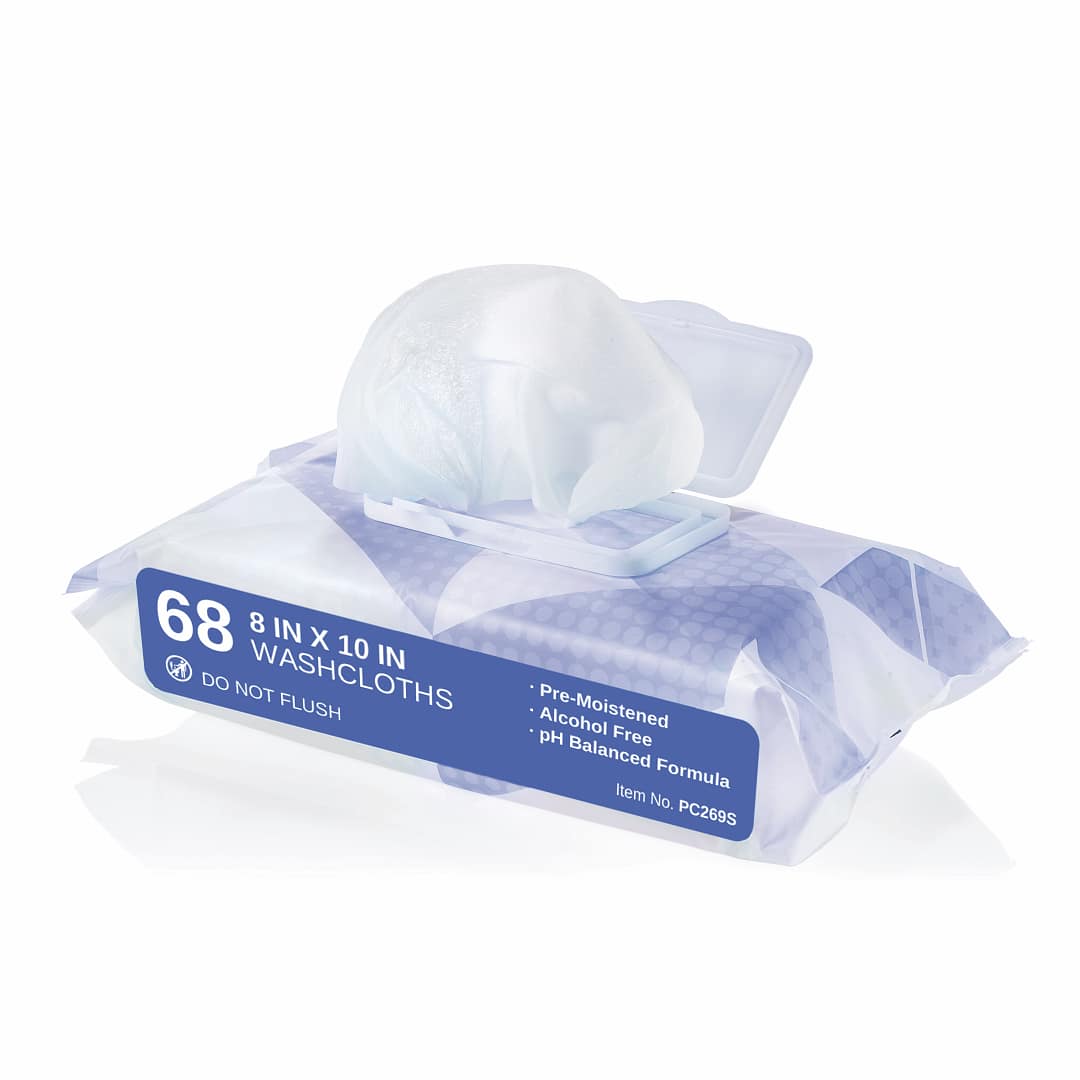 PC269S: Adult Washcloths | 8×10″ | 68 wipes per pack | 12 packs per case