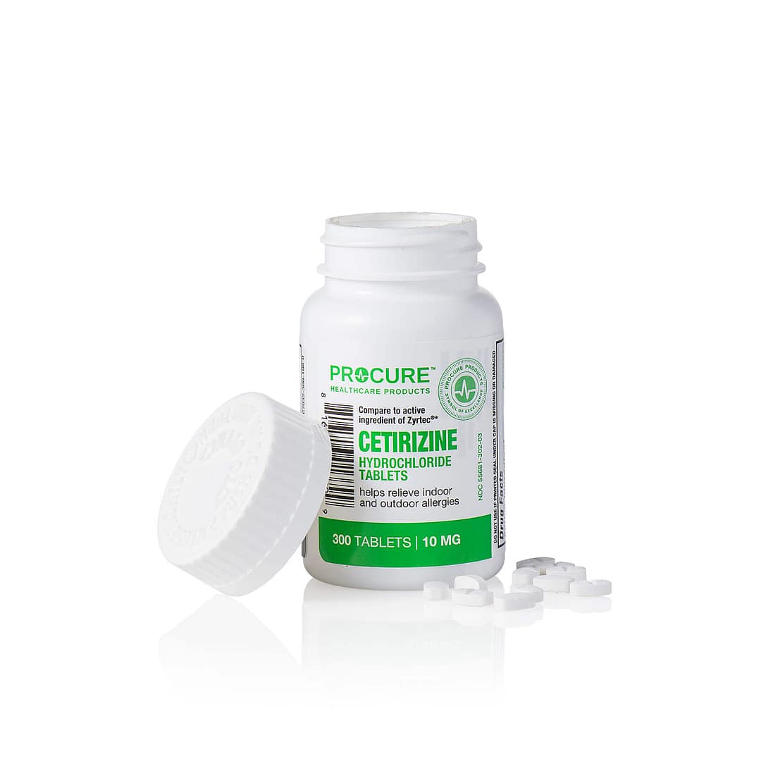 ProCure Cetrizine is an antihistamine used to relieve allergy symptoms such as watery eyes, runny nose, itching eyes /nose, sneezing, hives, and itching. Cetirizine provides 24-hour relief from your allergy symptoms.