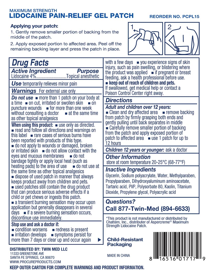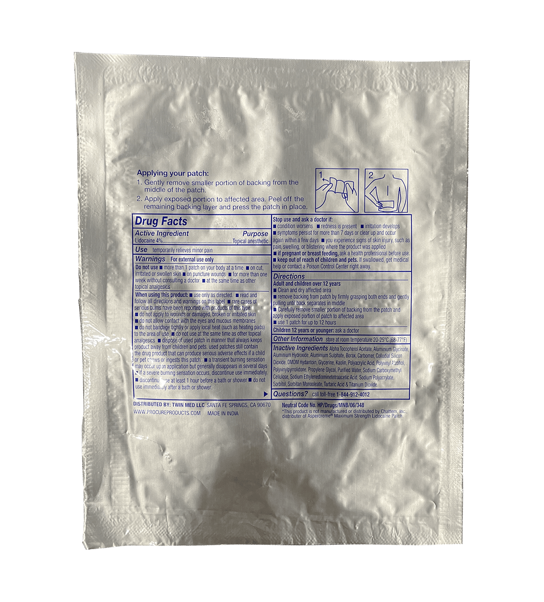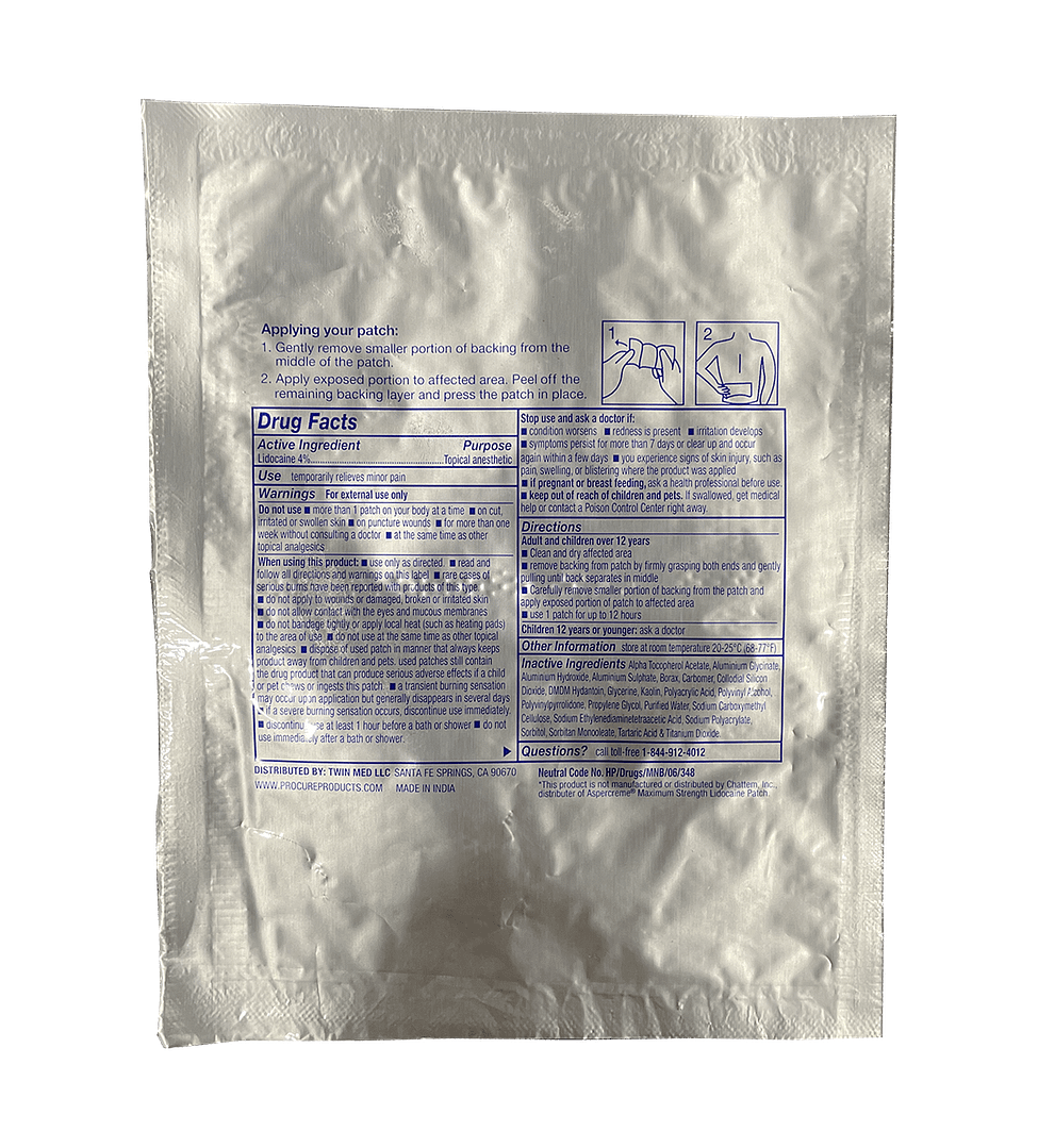 PCPL15: Lidocaine Pain Patches | 3.93″x5.51″ | 1 patch per pouch | 15 pouches per box | 24 boxes per case