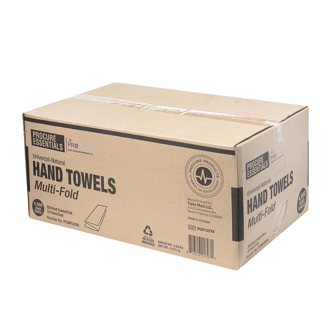 | Hand Towel | Multi-Fold | Natural | PCMF250K | 200 Sheets/Packs, 12 Packs/Case |