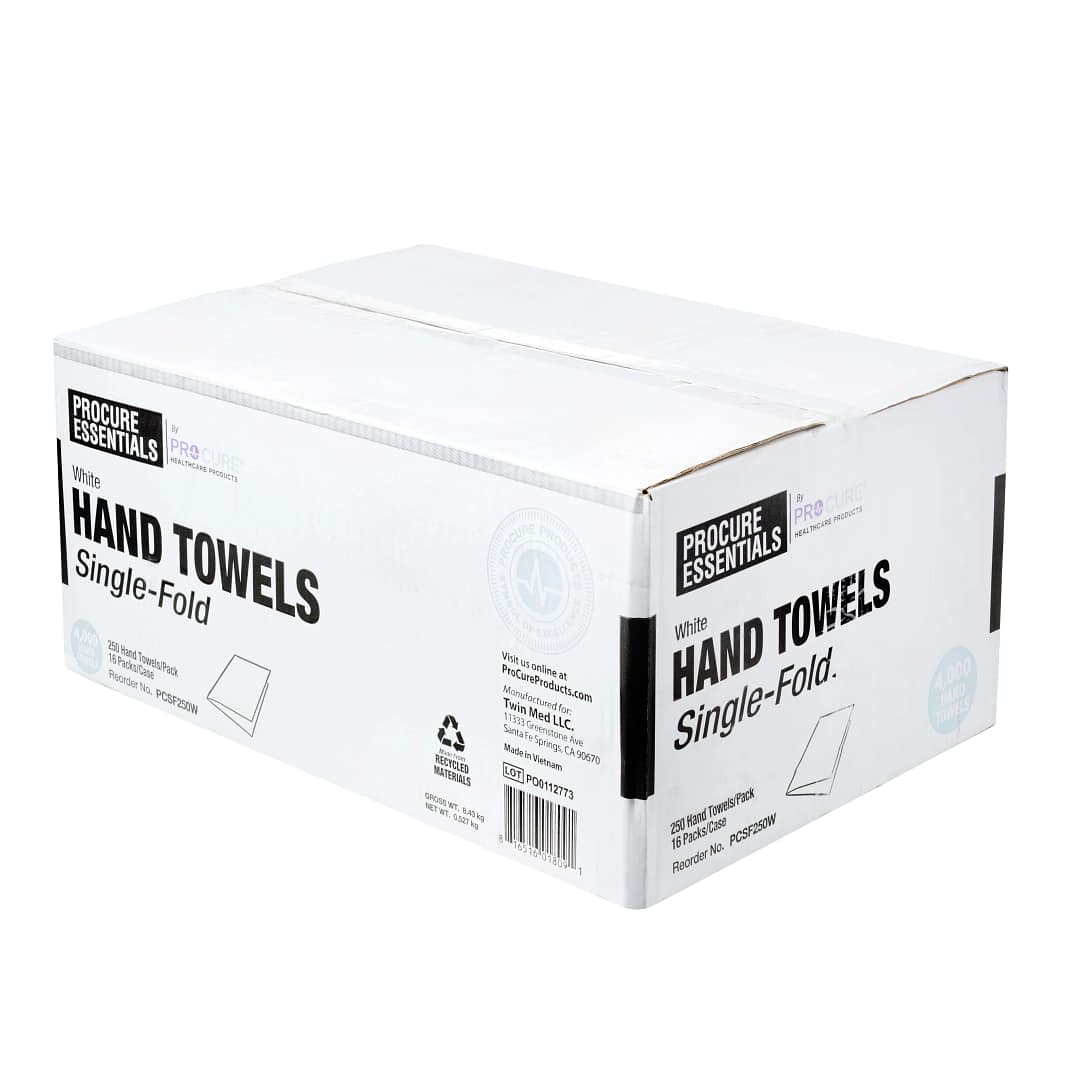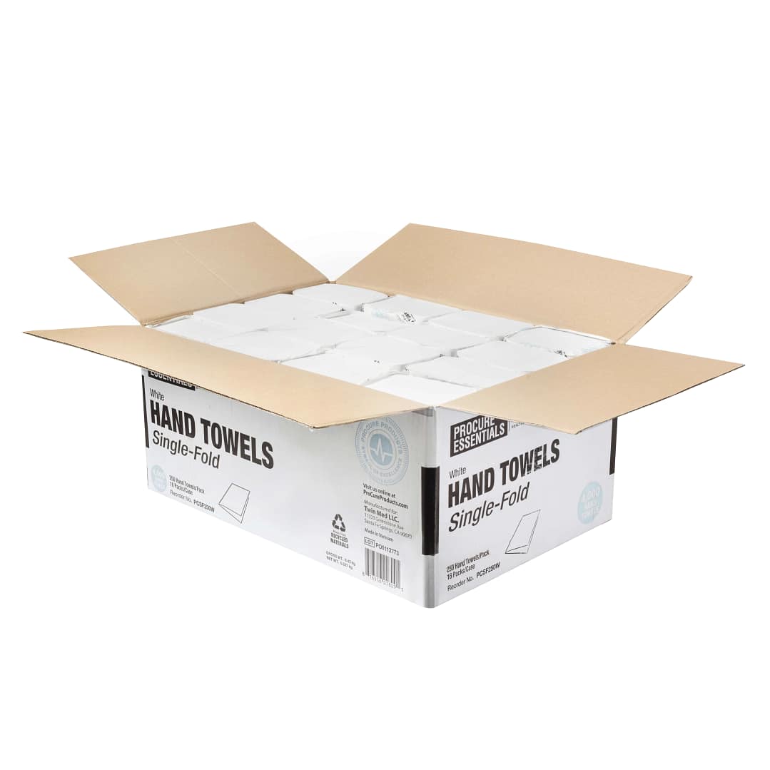 | Hand Towel | Single-Fold | White | PCSF250W | 250 Towels/Packs, 16 Packs/Case |