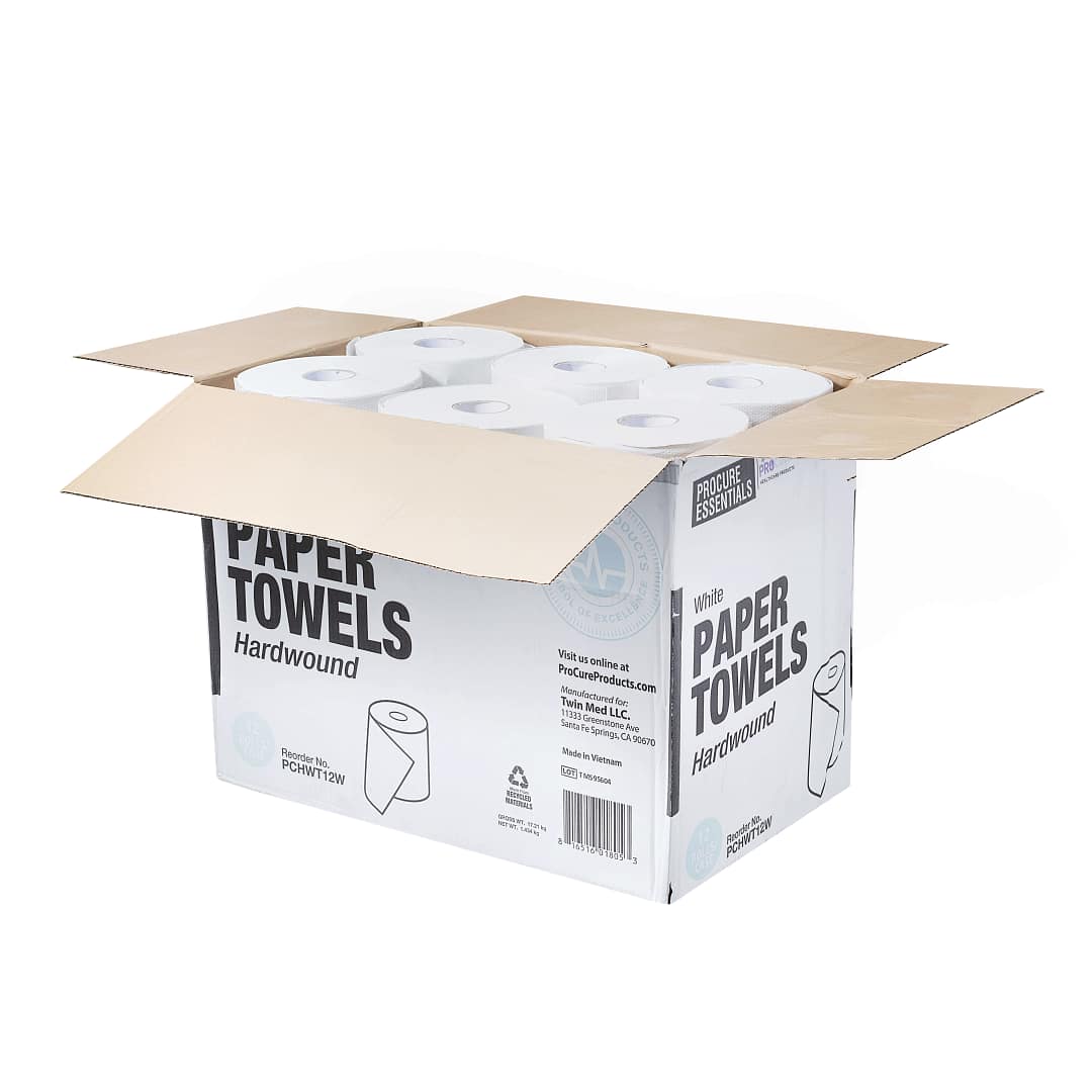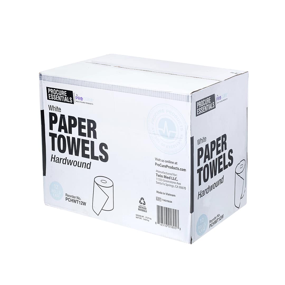 | Paper Towel | Hardwound | White | PCHWT12W | 8″ x 600ft/Roll, 12 Rolls/Case |