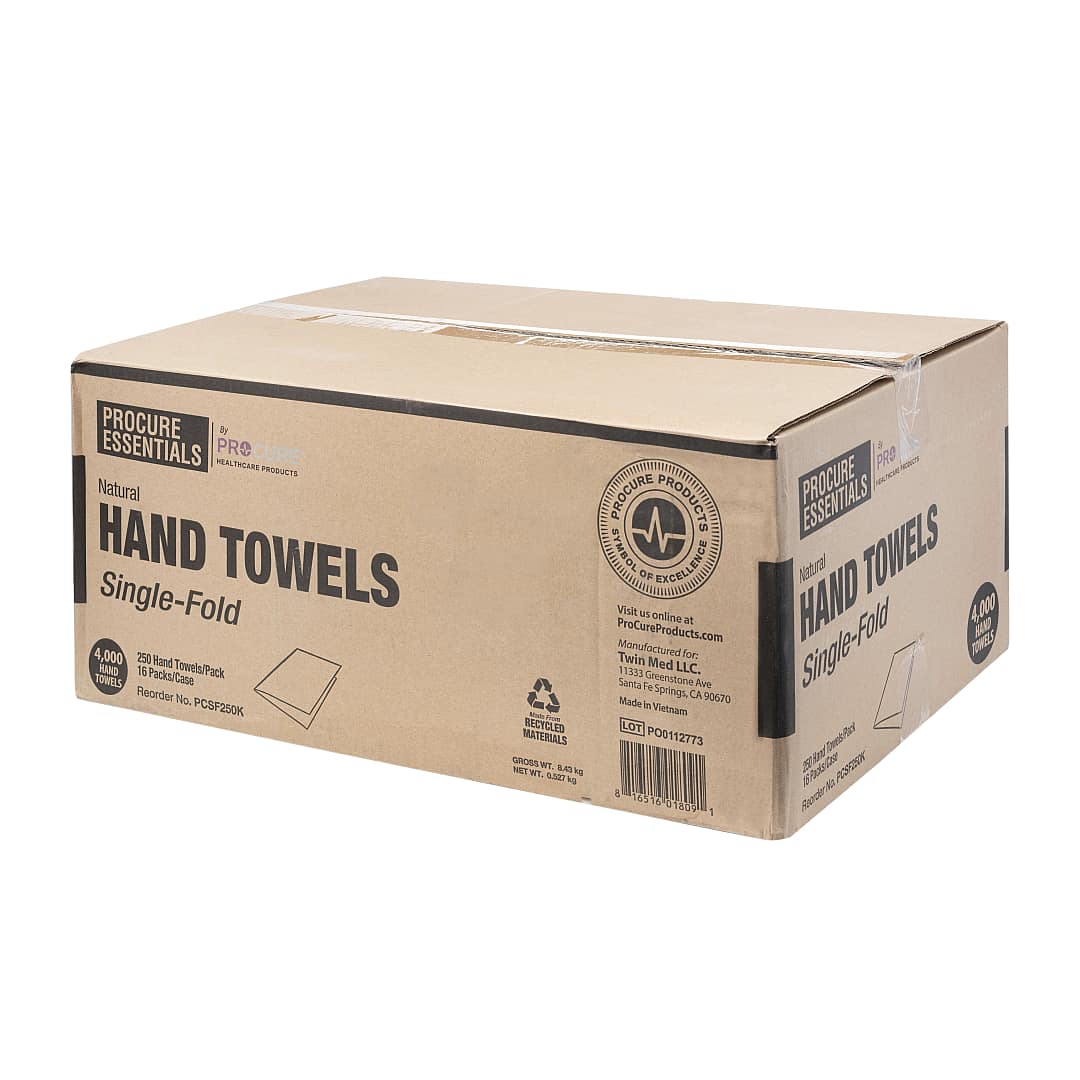 | Hand Towel | Single-Fold | Natural | PCSF250K | 250 Towels/Packs, 16 Packs/Case |