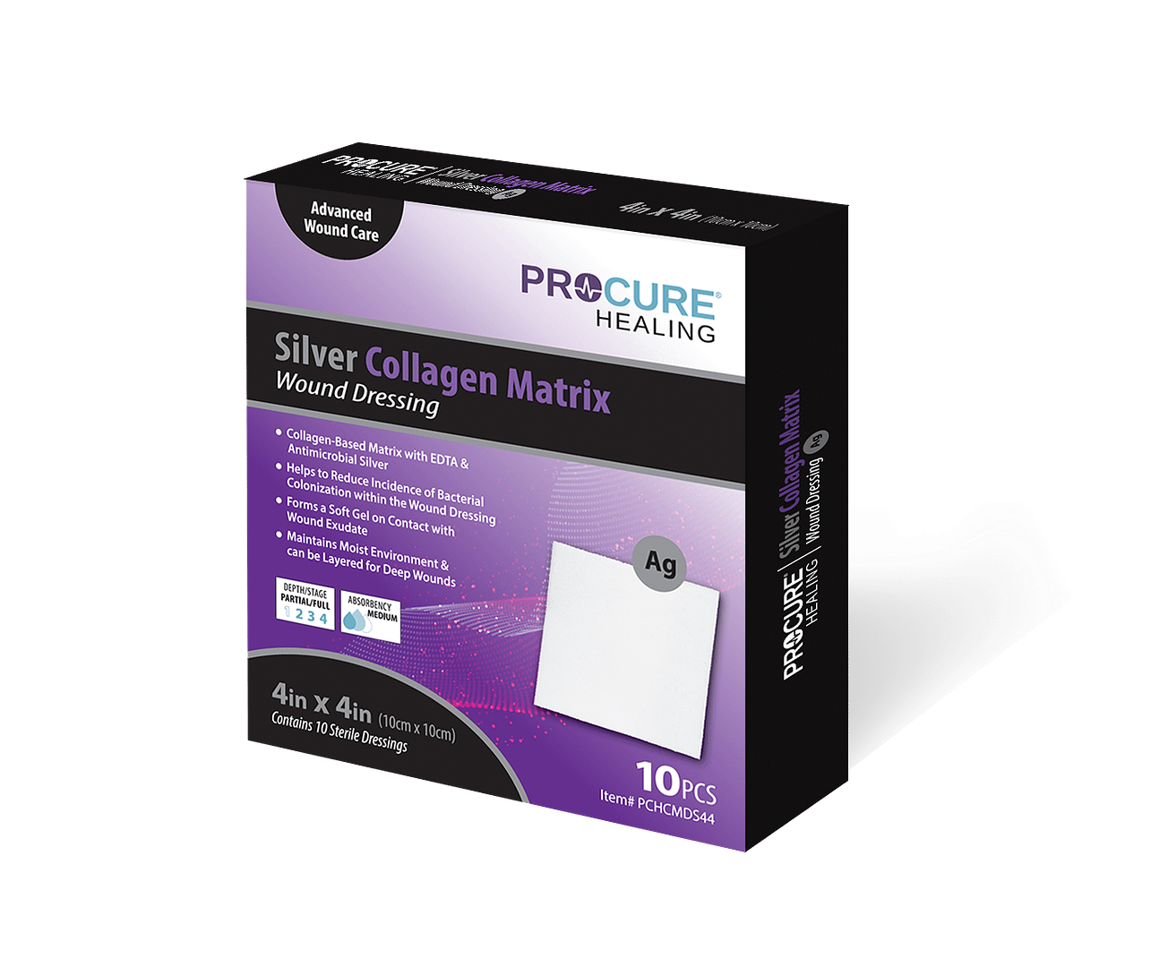 - Sterile, collagen-based matrix with EDTA and antimicrobial silver chloride