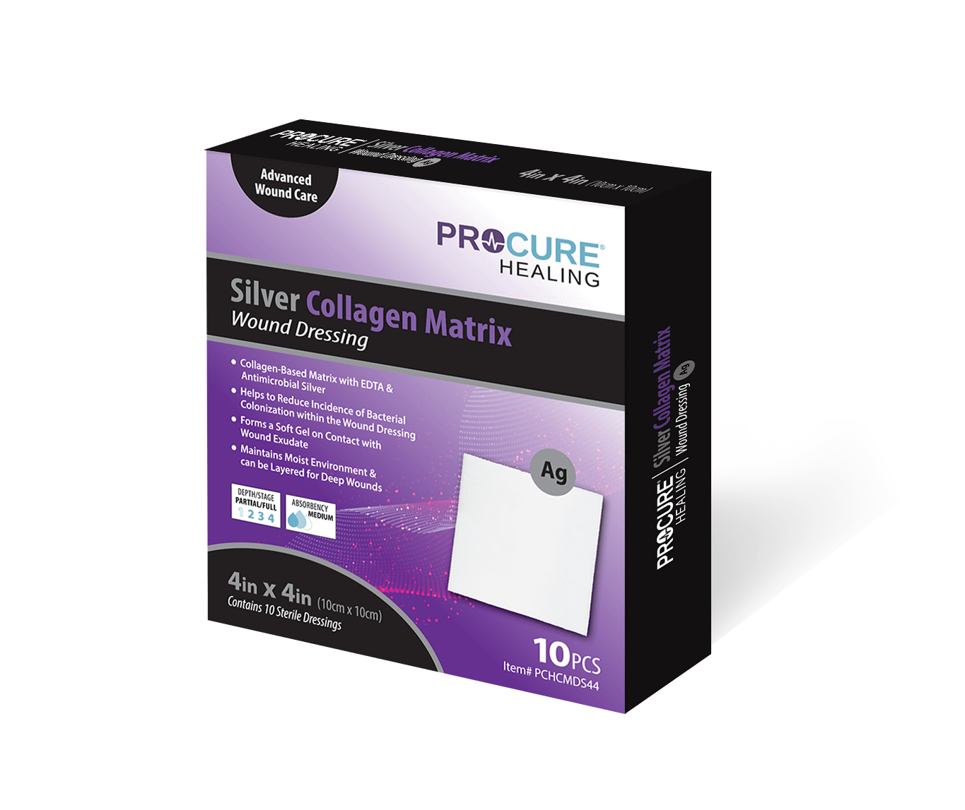 - Sterile, collagen-based matrix with EDTA and antimicrobial silver chloride