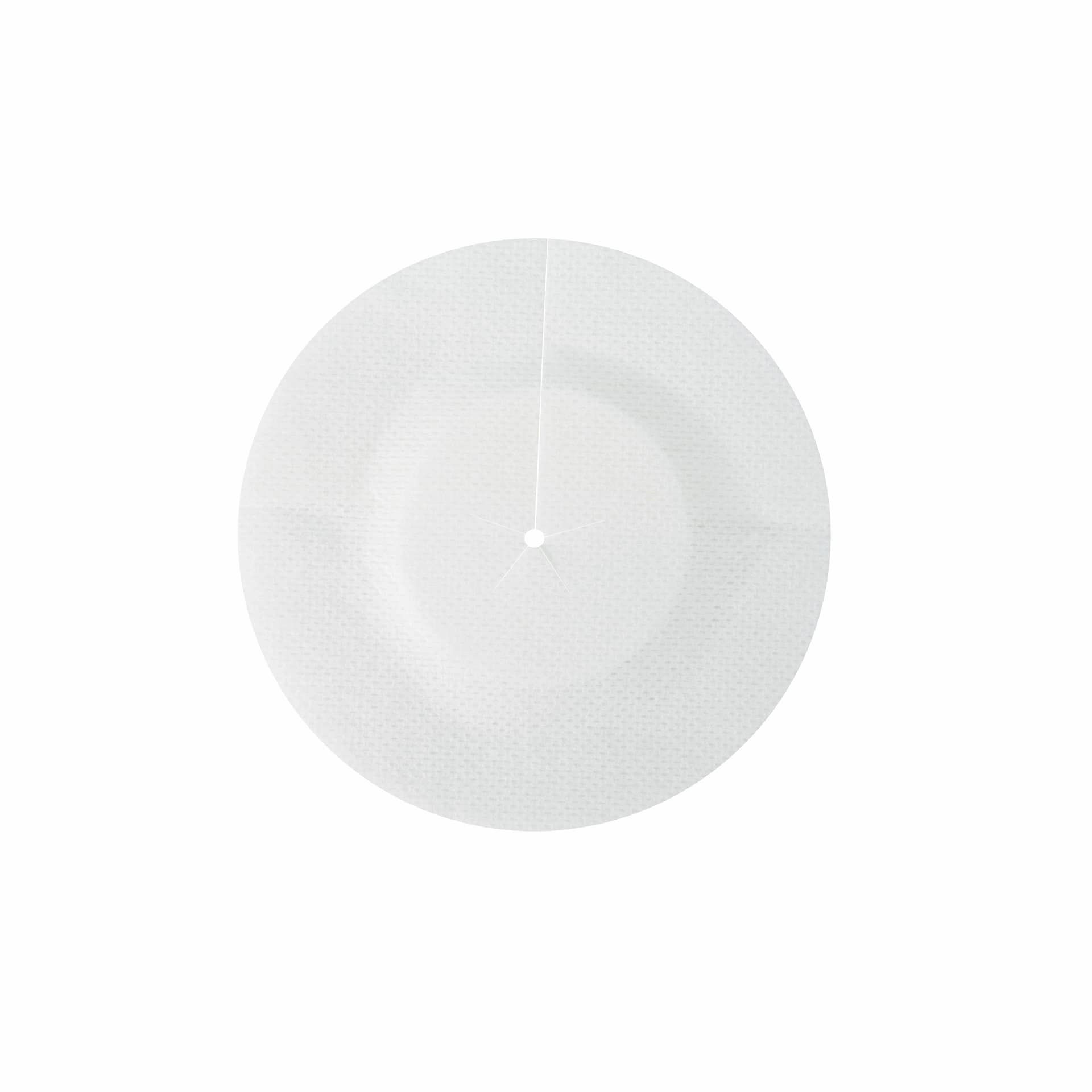 Our Waterproof Bordered Foam Wound Dressing with Adhesive Border is available in a round, fenestrated version with a radial slit and starburst opening for convenient application to tube sites.